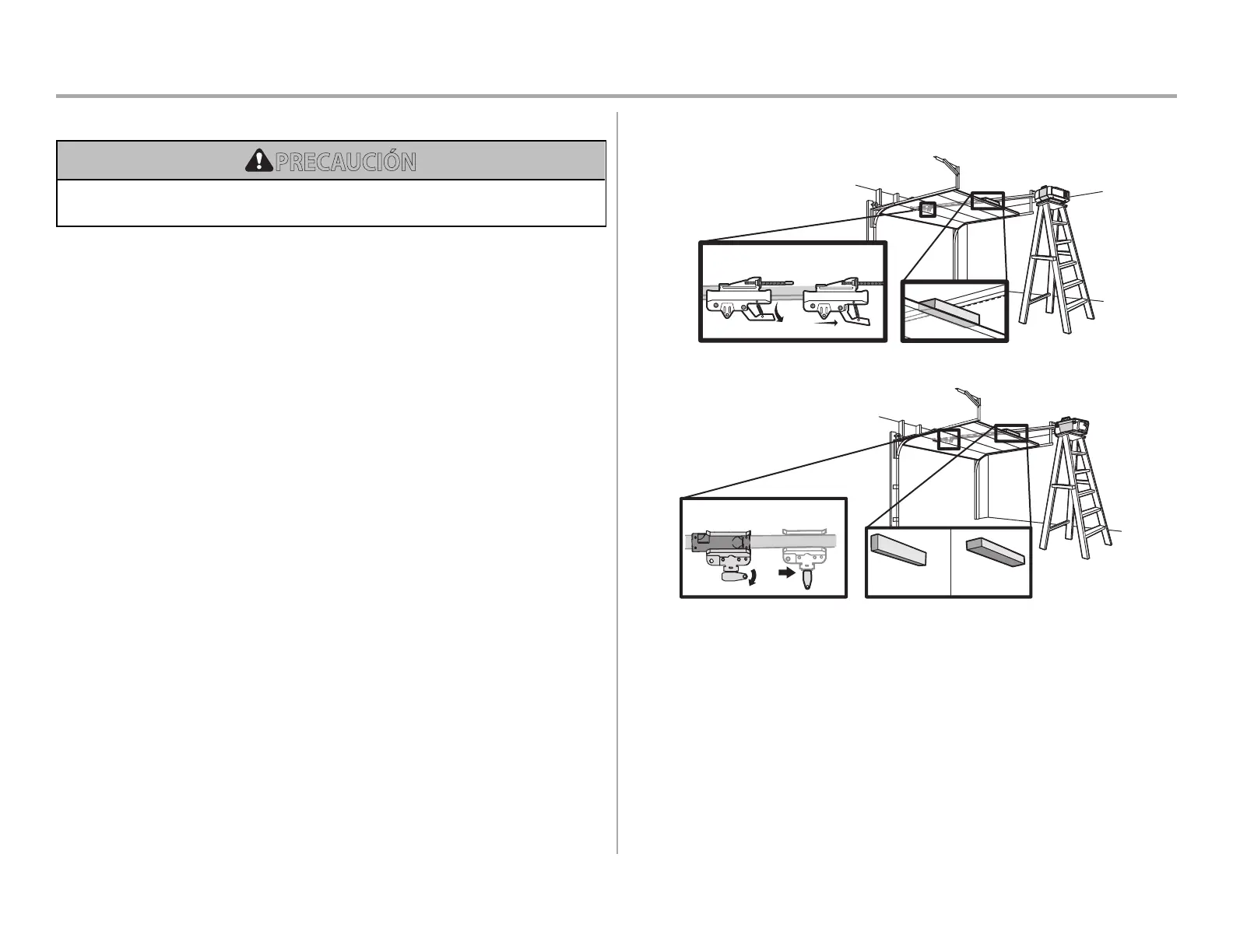 Para evitar daños a la puerta de garaje, apoye el riel del abrepuertas de garaje sobre la madera de