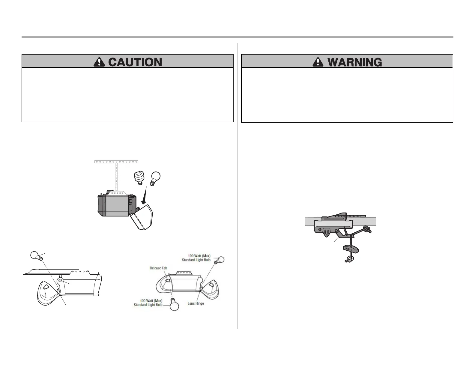 NEVER use emergency release handle unless garage doorway is clear of persons and