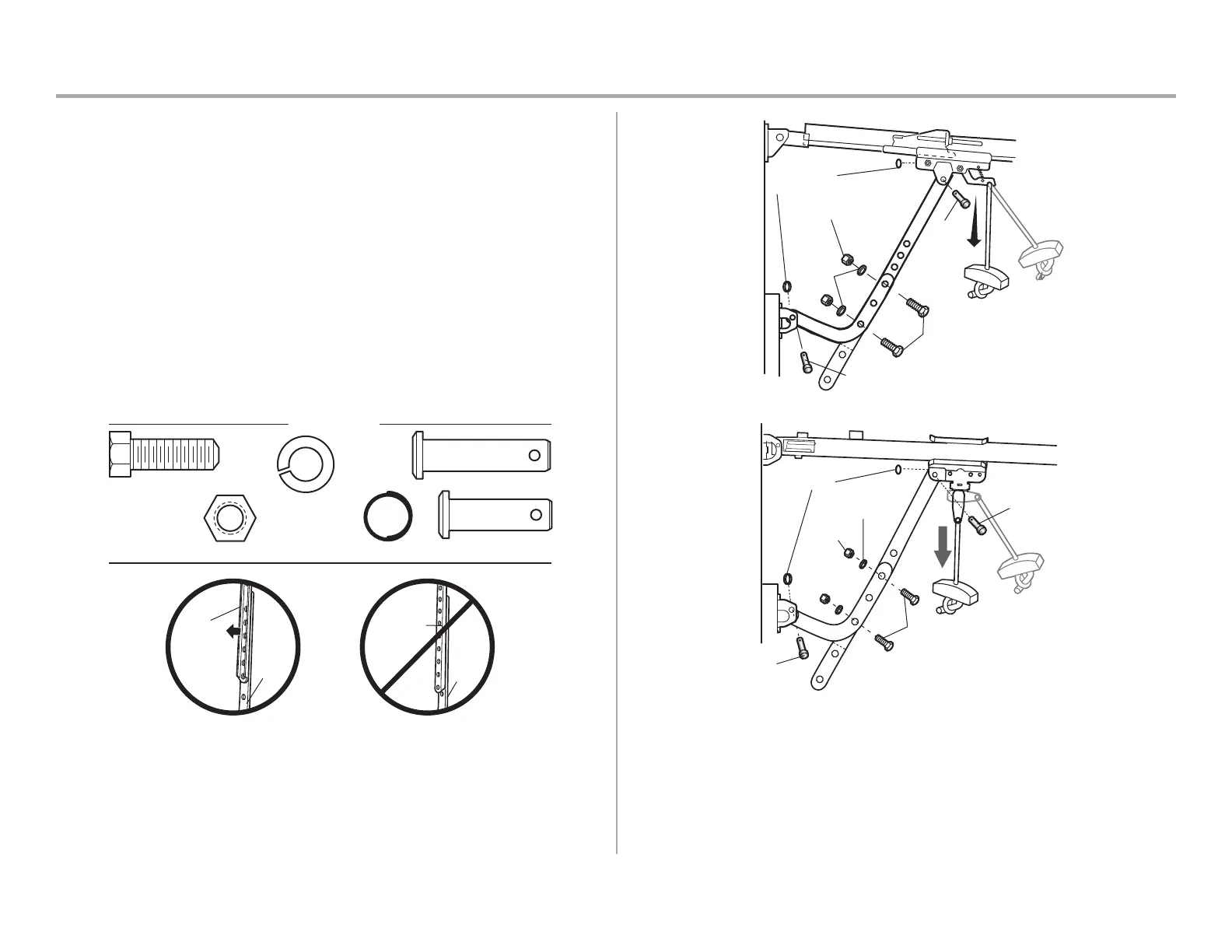 2. Attach the straight door arm to the outer trolley using the clevis pin. Attach with the ring