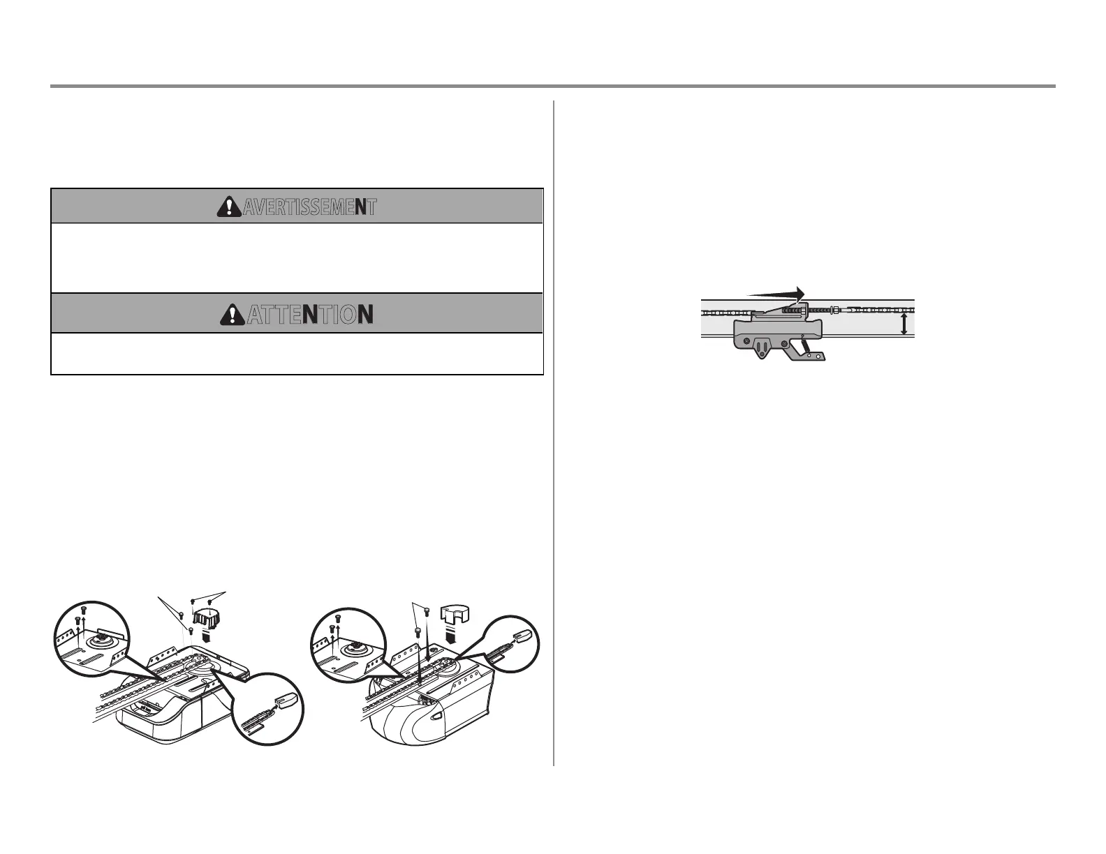 REMARQUE: Utilisez UNIQUEMENT les boulons retirés de l’opérateur de la porte. Placez l’ouvre-