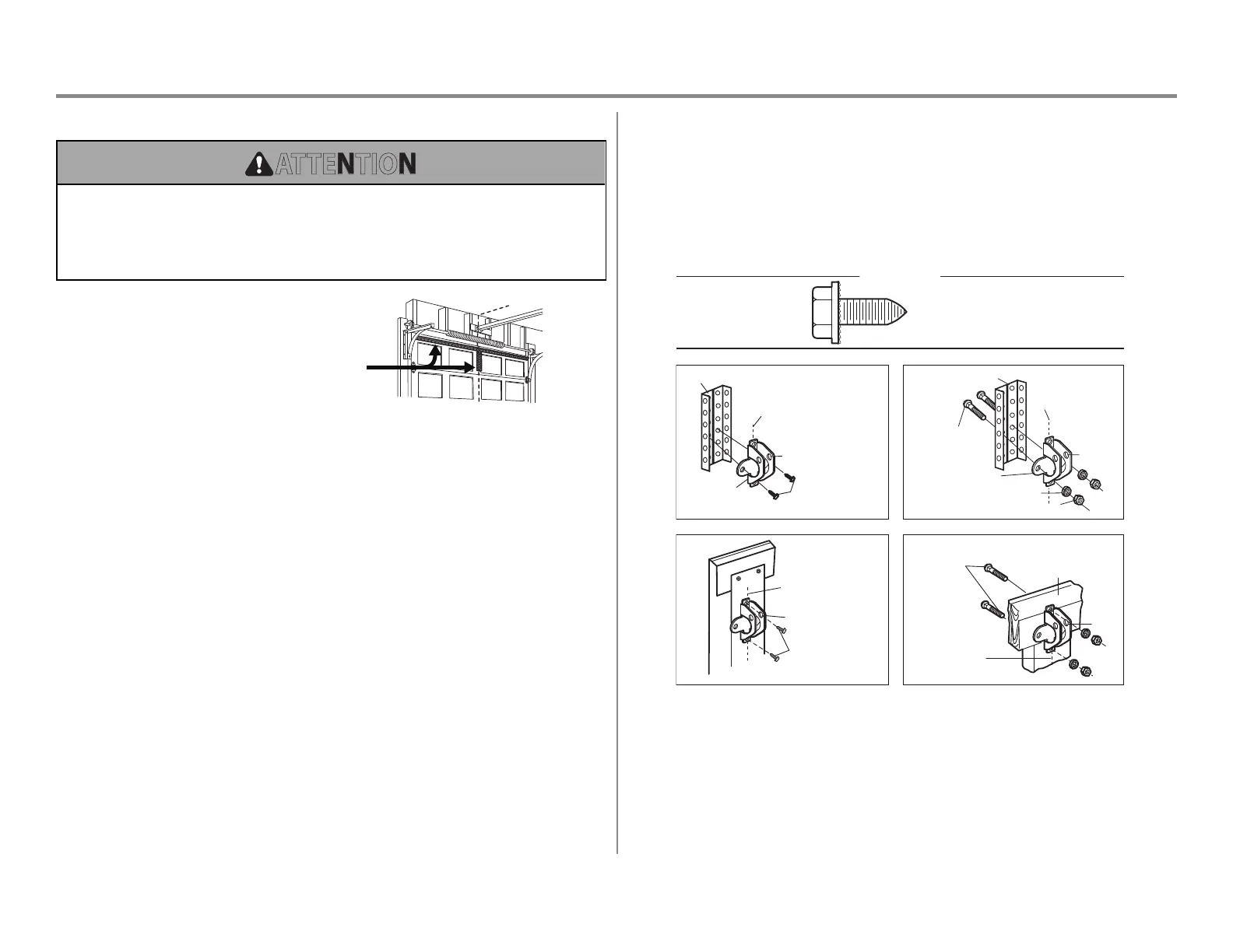 AVANT l’installation du support de porte. Contactez le fabricant de la porte de garage ou le