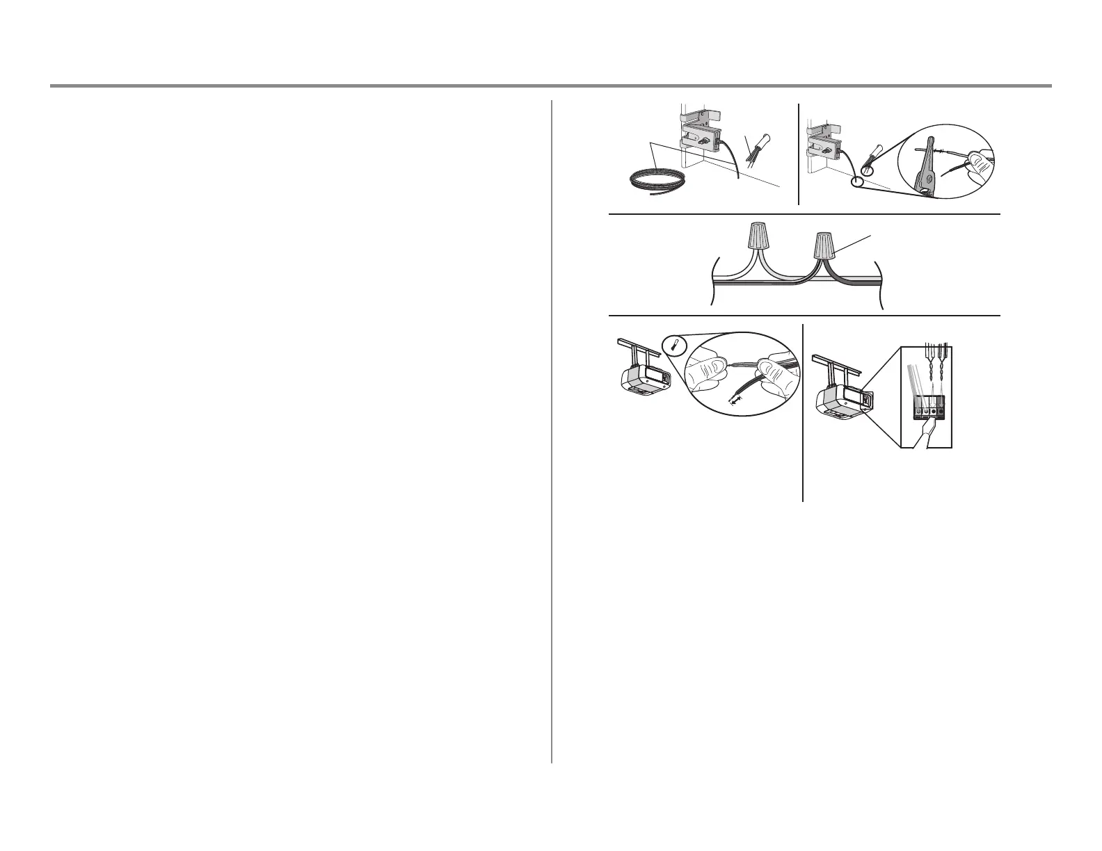 4. Au niveau de l’ouvre-porte de garage, dénudez l’extrémité des fils connectés auparavant aux