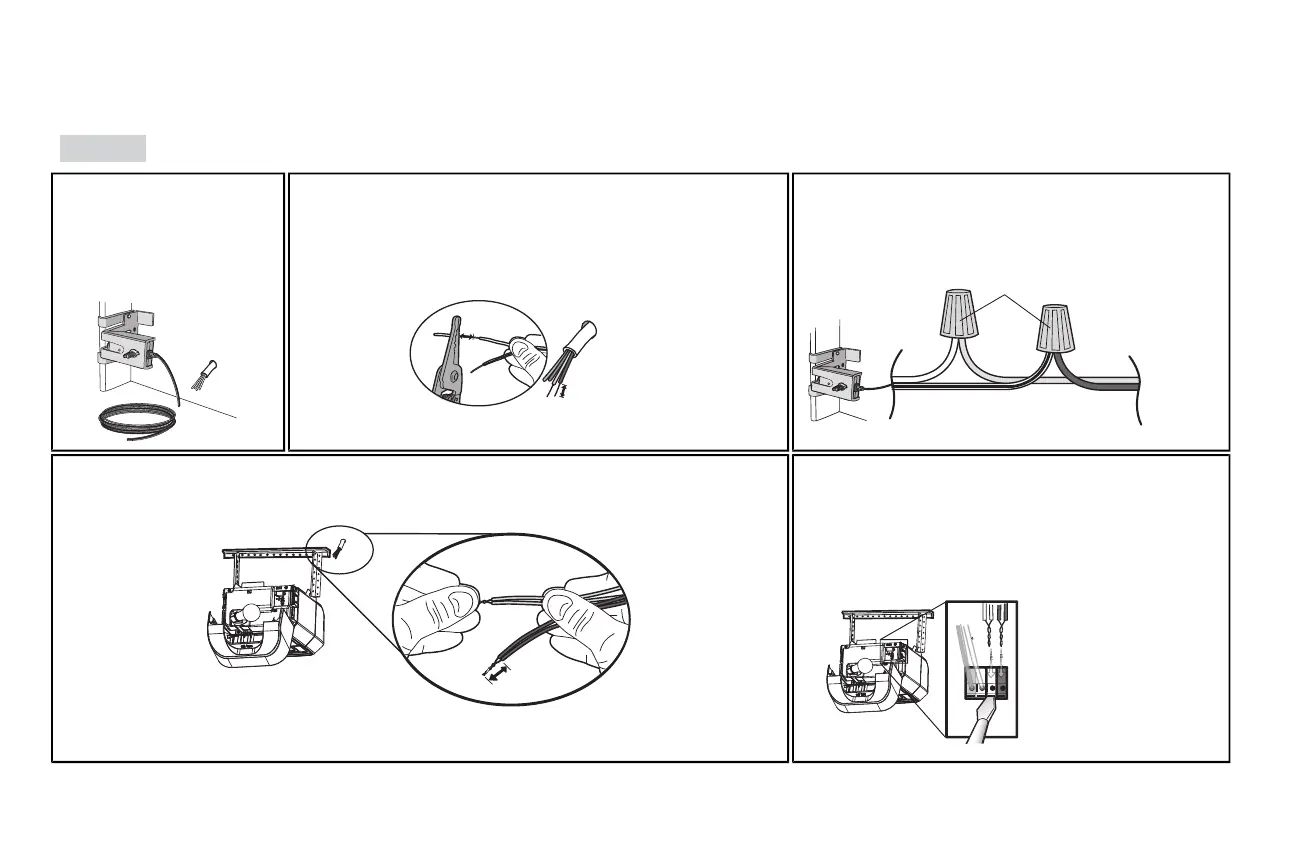 2.4B At the garage door opener,strip 7/16 inch (11 mm) of insulation from each end of the wires previouslychosen for the