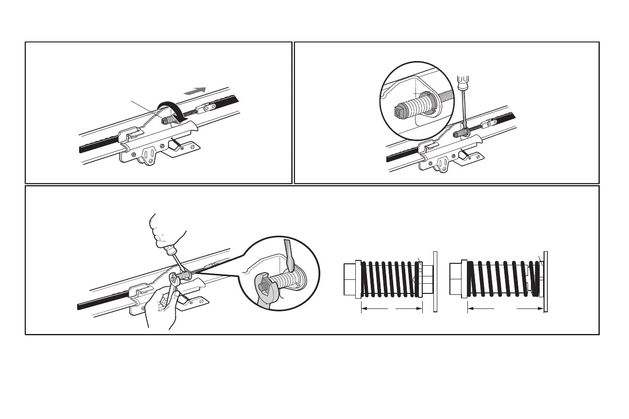 2.3 Tighten the spring trolleynut with an adjustable wrench or a 7/16" open end wrench about a quarter turn until the spring releases and snaps the nutring againstthe trolley.This setsthe spring to