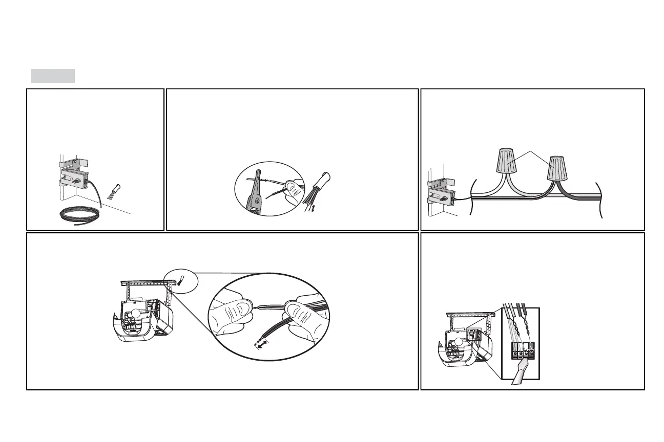 2.4B Au niveau de l'ouvre-porte de garage,enlever 11mm(7/16po) d'isolation de chaque extrémité des fils choisis