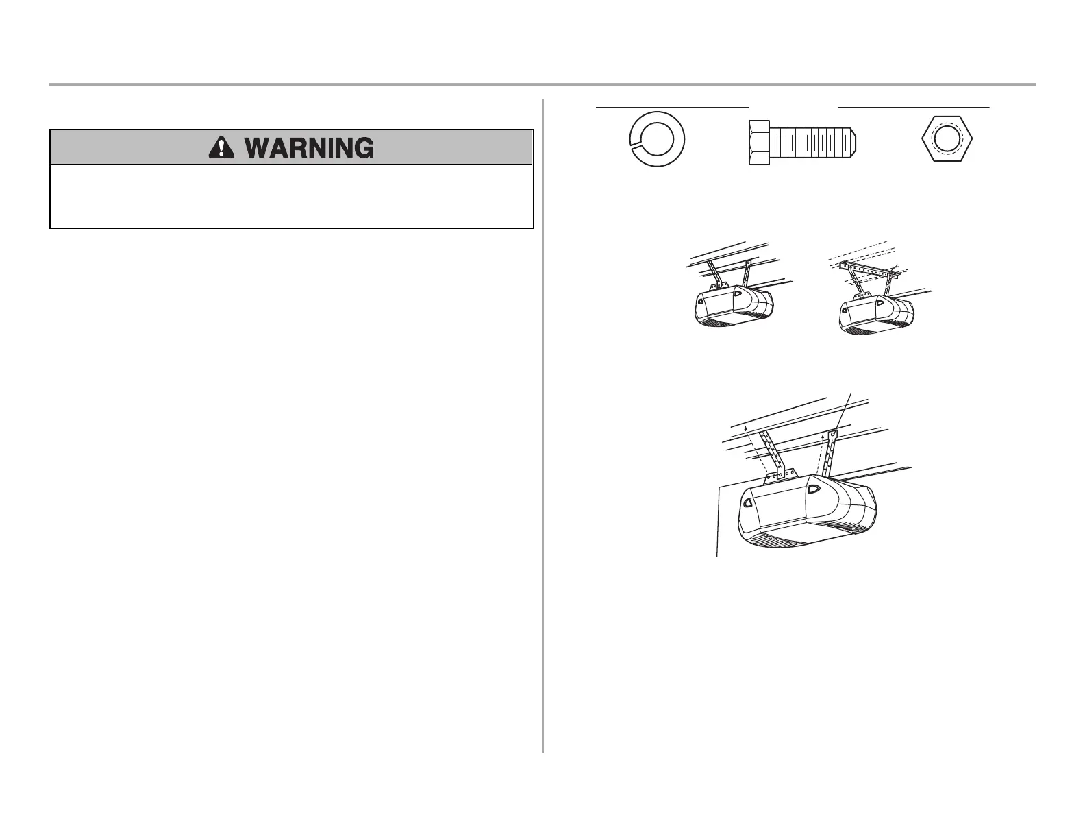 sturdy metal bracket to structural supports before installing the opener. This bracket and