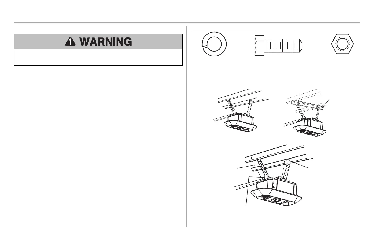 To avoid possible SERIOUS INJURY from a falling garage door opener, fasten it SECURELY to structural
