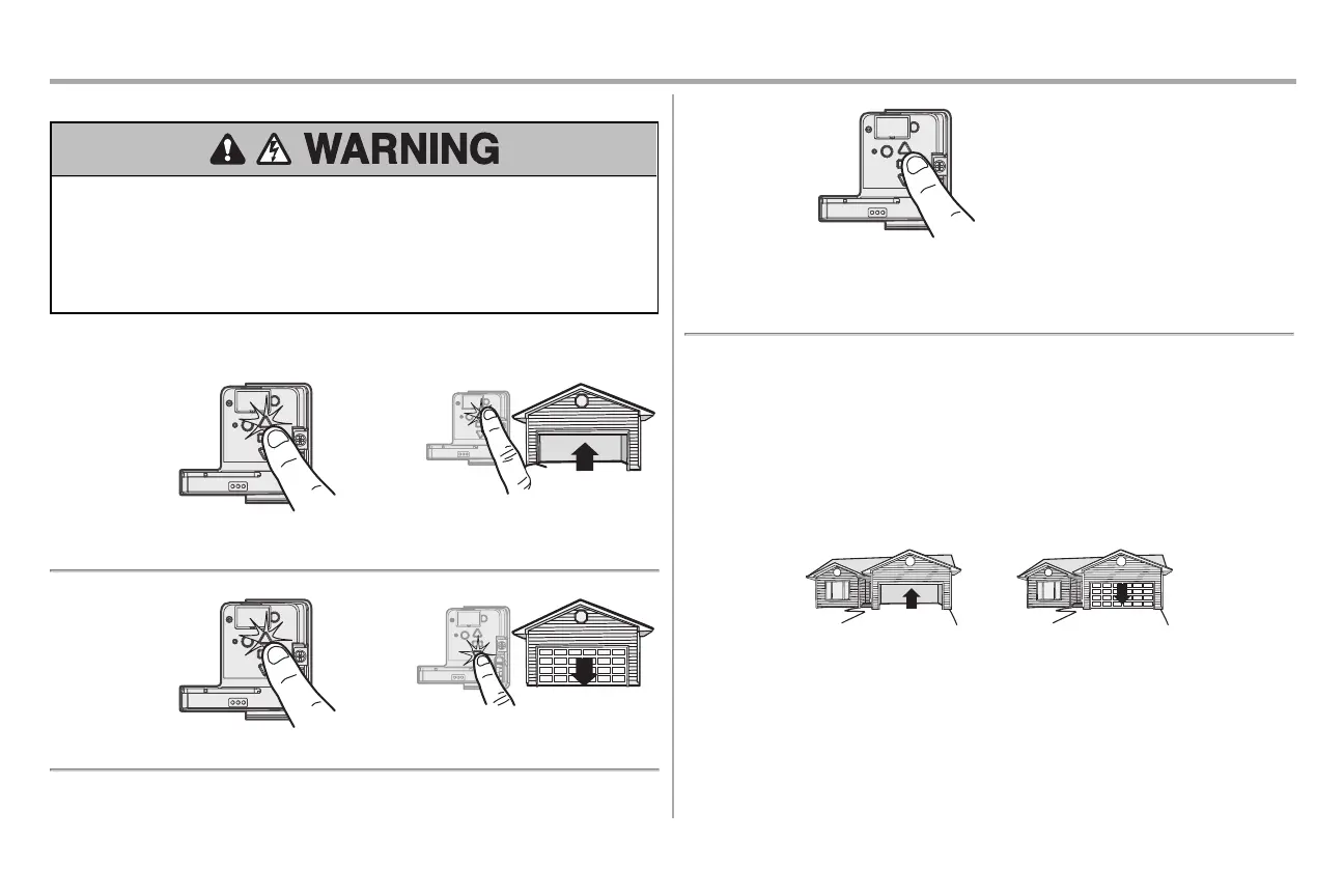 open and close. The garage door opener will sound an audible and visual alert before automatically opening