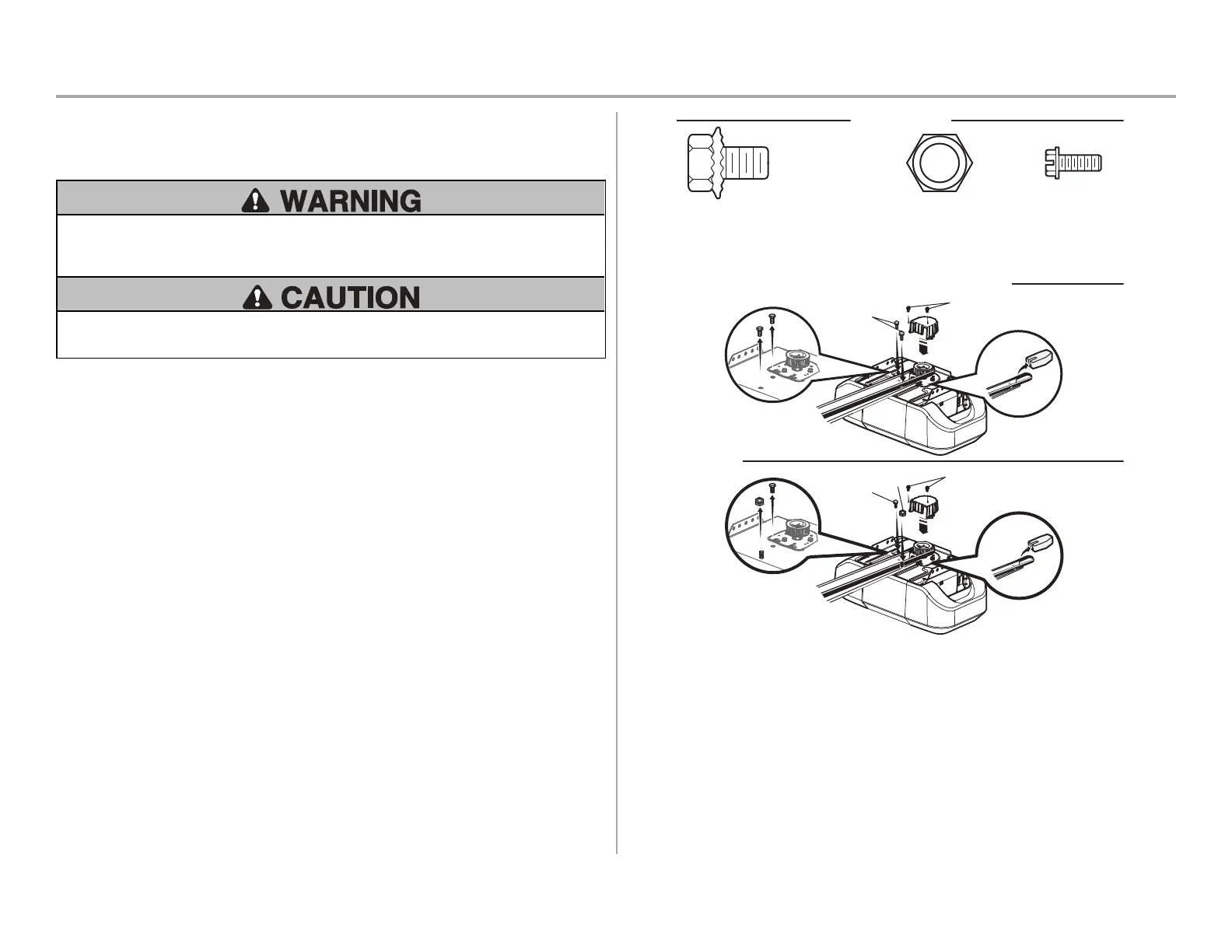 4O AVOID 3%2)/53 DAMAGE TO GARAGE DOOR OPENER USE /.,9 THOSE BOLTSFASTENERS MOUNTED IN THE