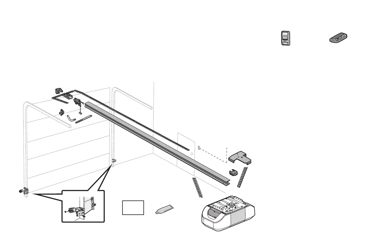 REMARQUE : Accessoires varient selon le modèle acheté porte de garage. En fonction de votre modèle spécifique, peuvent être inclus avec