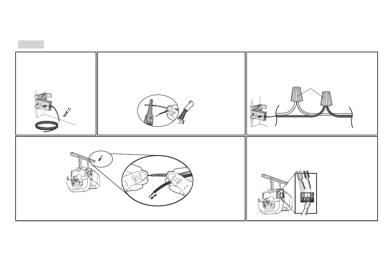 2.4B Au niveau de l'ouvre-porte de garage, enlever 11mm (7/16po) d'isolation de chaque extrémité des fils choisis