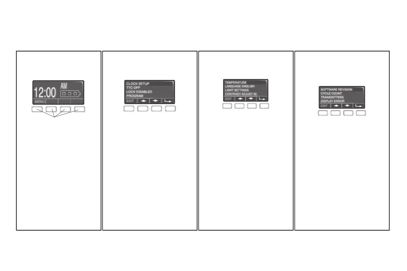 Les fonctions de la commande de porte peuvent être programmées grâce à une série de menus à l'écran et aux touches de navigation. Se reporter aux descriptions ci-dessous.