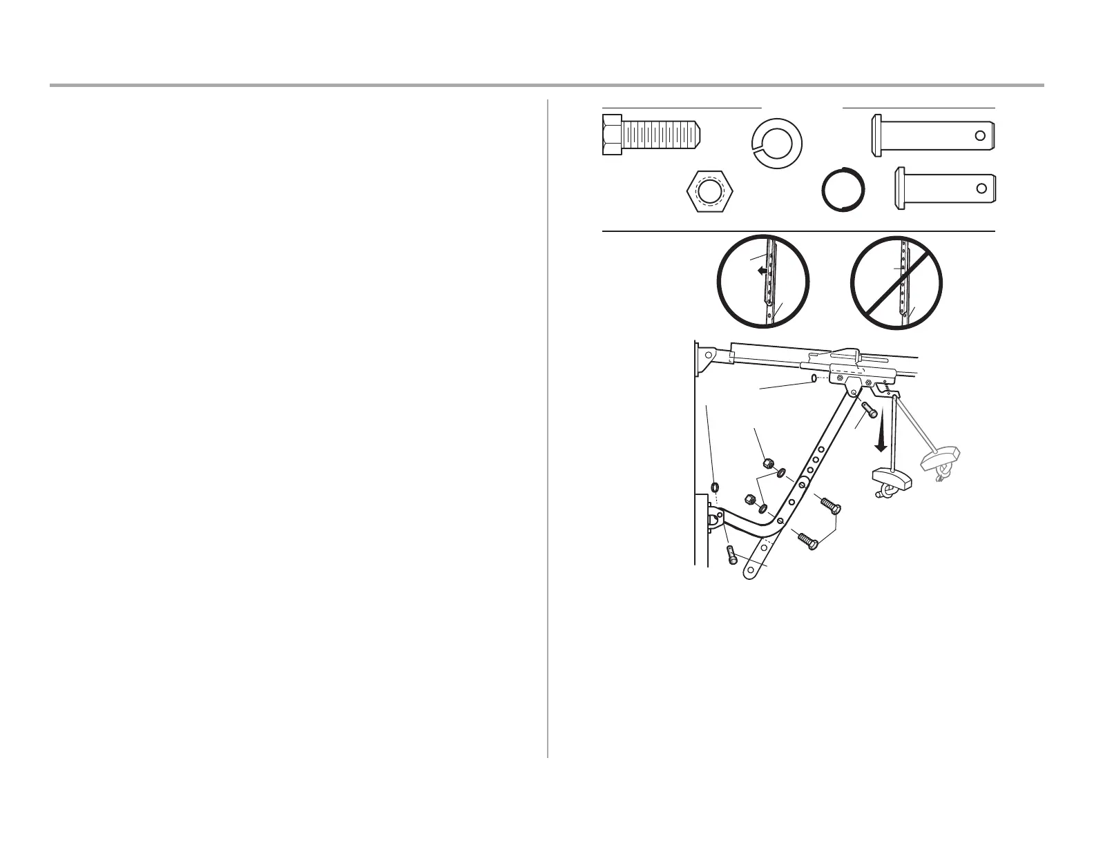 2. Fije el brazo recto de la puerta al carro exterior con el pasador de horquilla. Fije con el