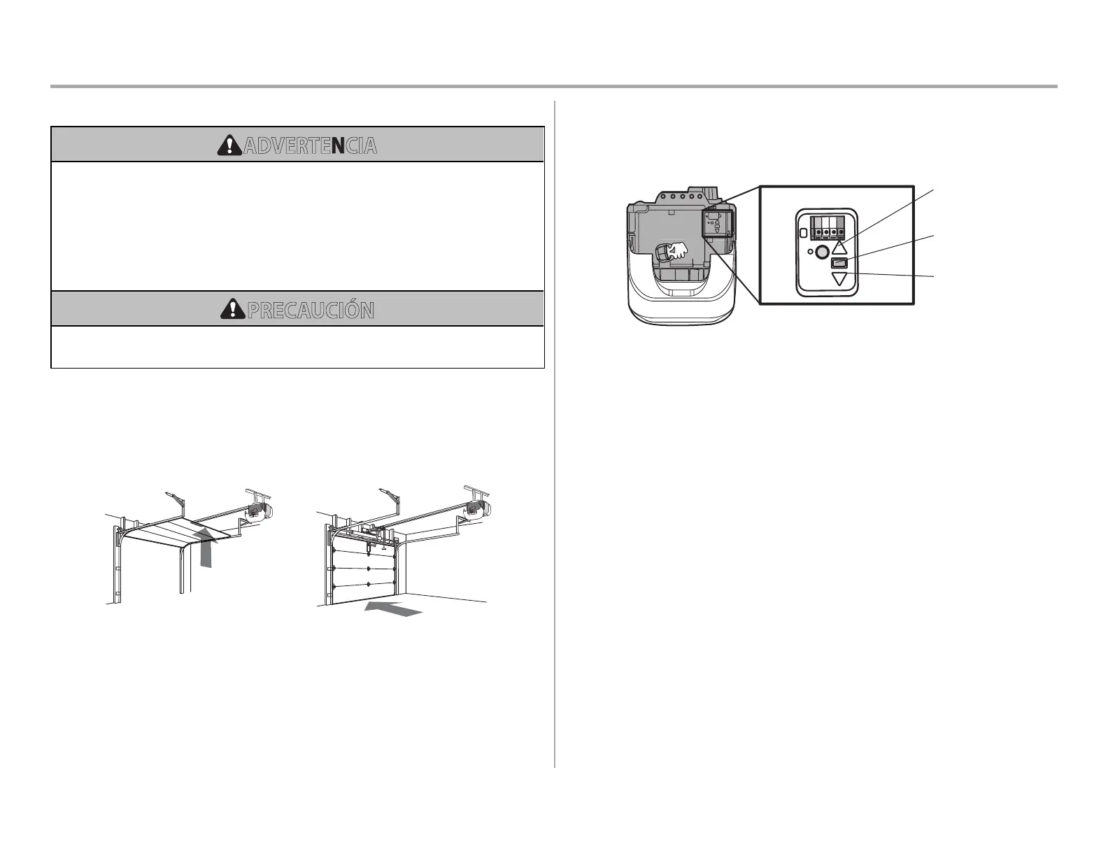 NOTA: Si algo interfiere con el desplazamiento vertical de la puerta, esta se detendrá. Si algo