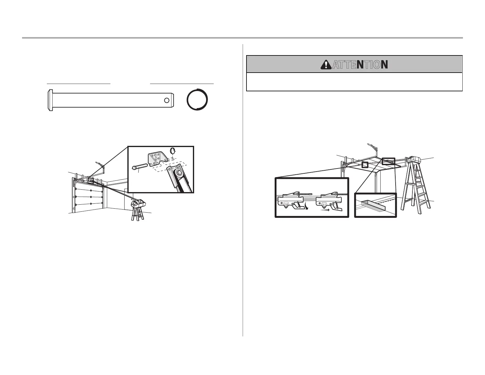 1. Retirez le matériel d’emballage et soulevez l’ouvre-porte de garage sur une échelle.
