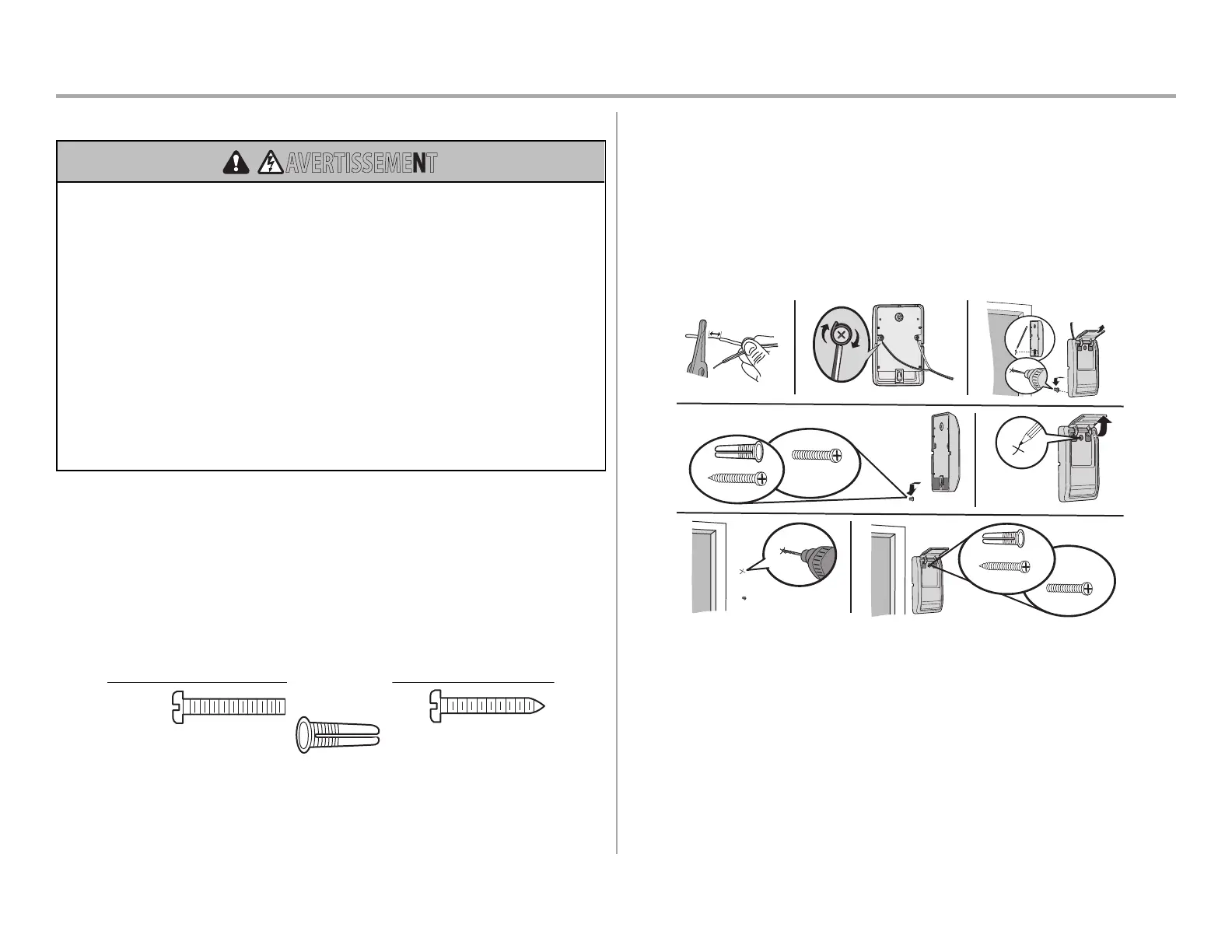 ancrages pour cloisons sèches. Utilisez les trous existants de la boîte de commande.