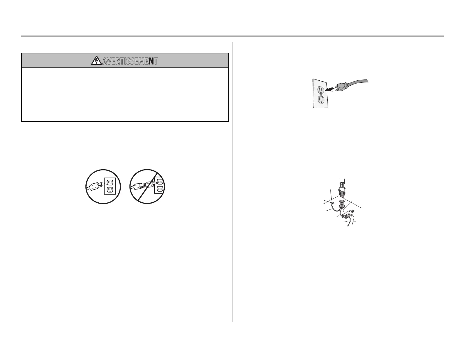 N’utilisez JAMAIS de rallonge, d’adaptateur à 2fils ou ne modifiez en AUCUN cas la fiche