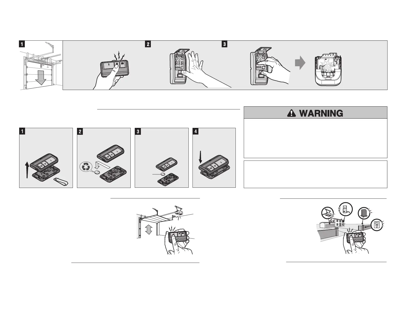 receiver and/or transmitter are prohibited, except for changing the code setting or replacing the battery.