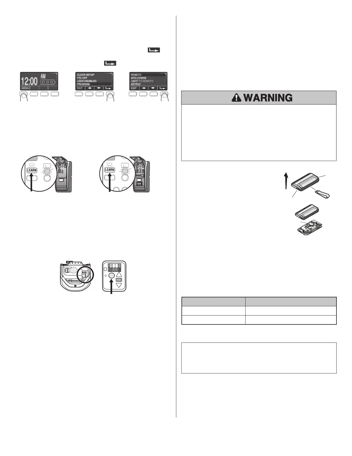 1. Press and hold the LEARN button on the garage door opener until the