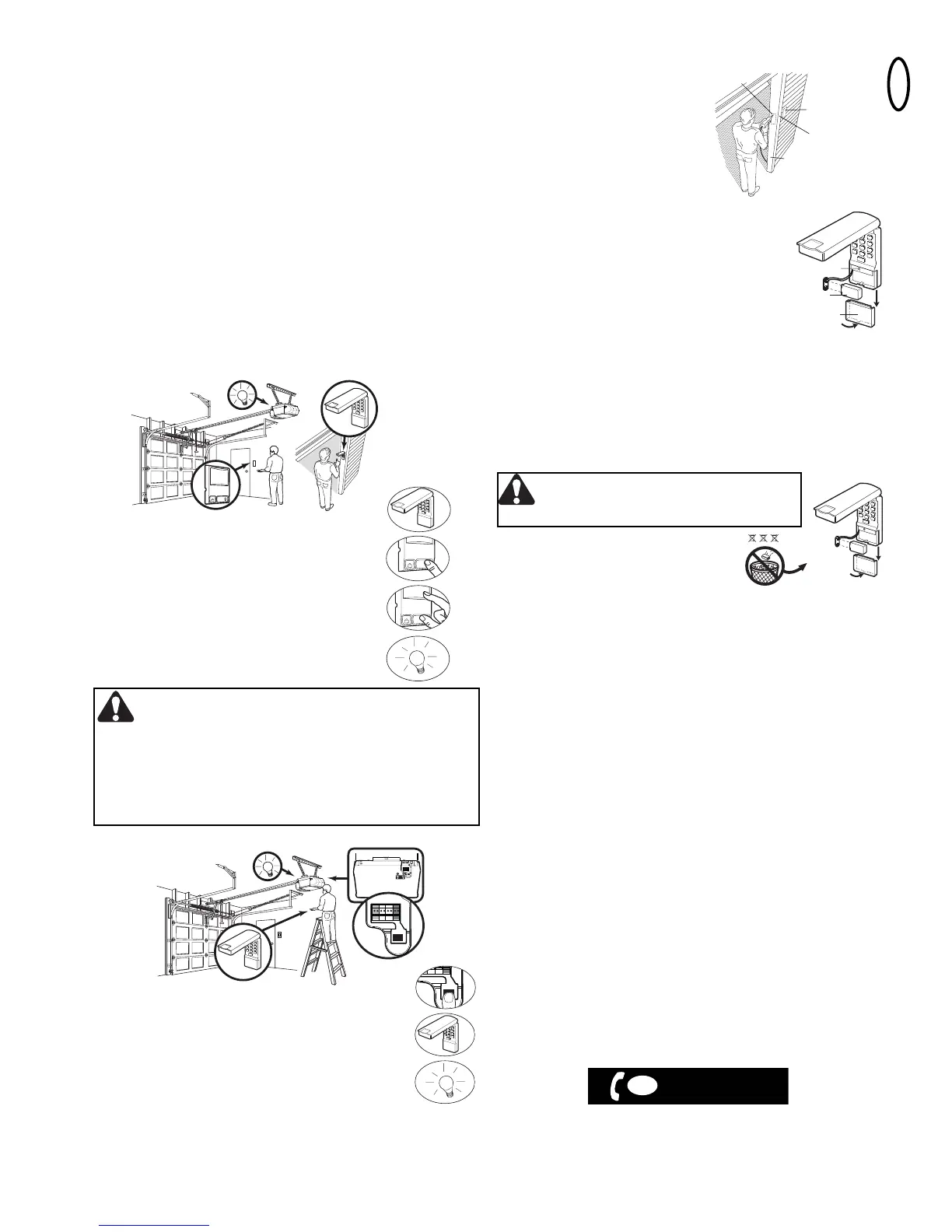 • Instale la cerradura por código de radio a la vista de la puerta de garaje, fuera
