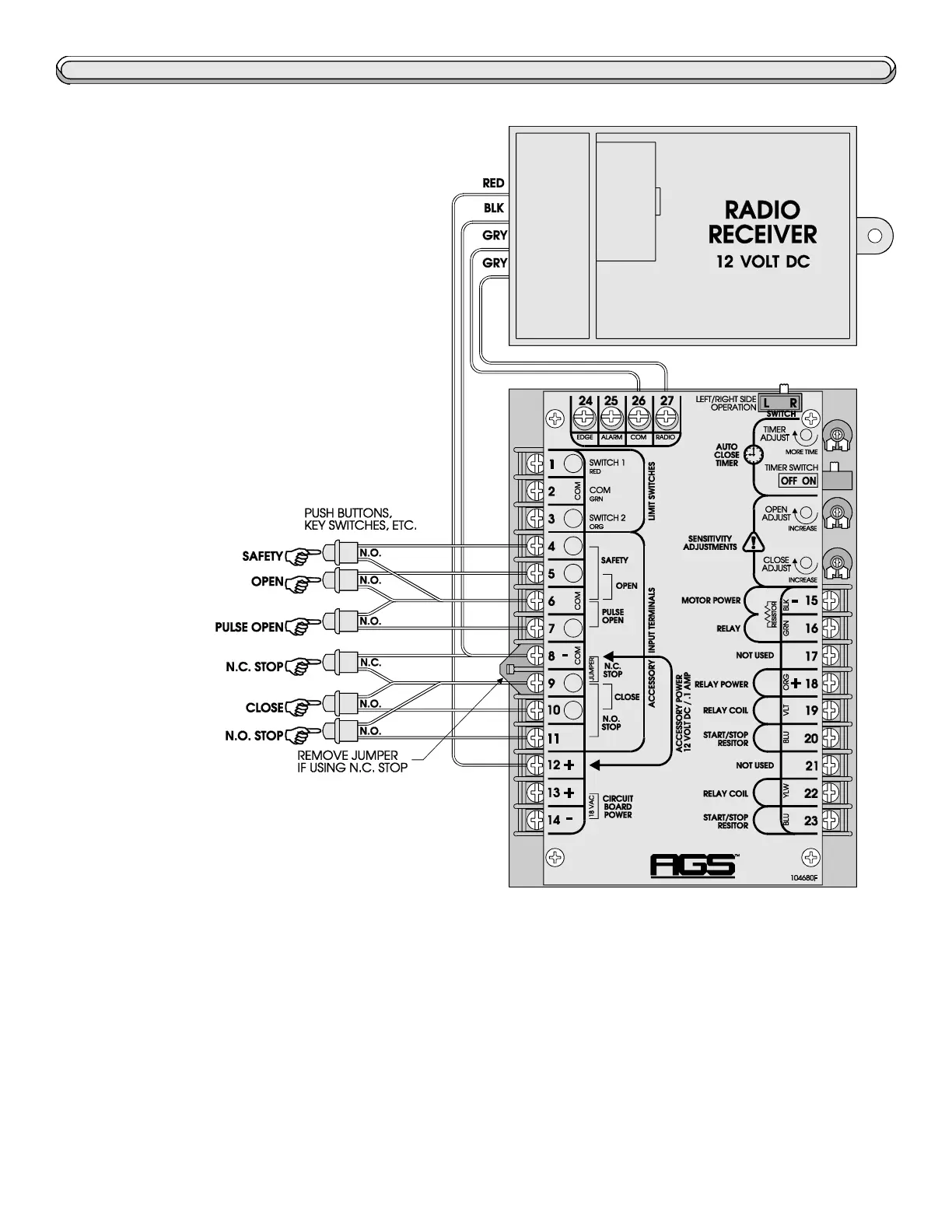 N.C. STOP INPUT: Any device that is used to stop the gate operator while it is running in the open or closed