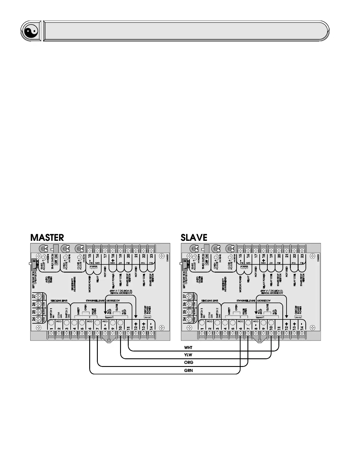 to the slave circuit board as shown below. Any operator can be used as either a master or a slave. All accessories will be