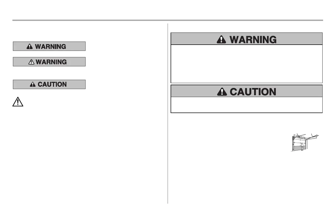 l NEVER try to loosen, move or adjust garage door, door springs, cables, pulleys, brackets or their hardware,