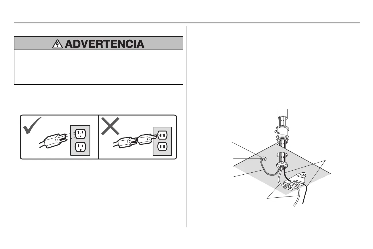tres patas. Esta clavija sólo se puede conectar a un tomacorriente con puesta a tierra y con tres entradas. Si la clavija