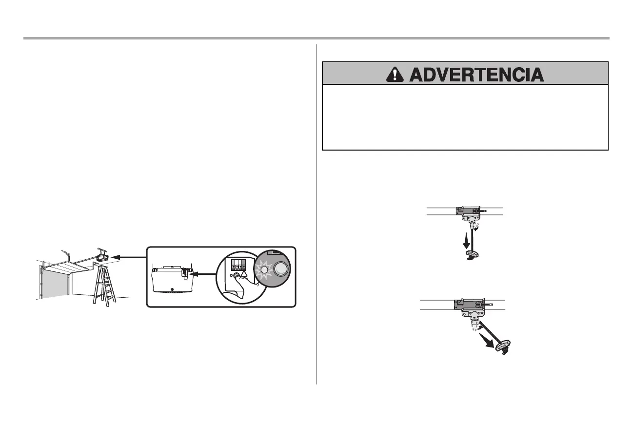 l De ser posible, use el desenganche de emergencia para soltar el carro SOLO cuando la puerta del garaje