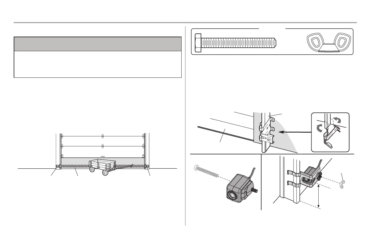 l Install the safety reversing sensor so beam is NO HIGHER than 6” (15 cm) above garage oor.