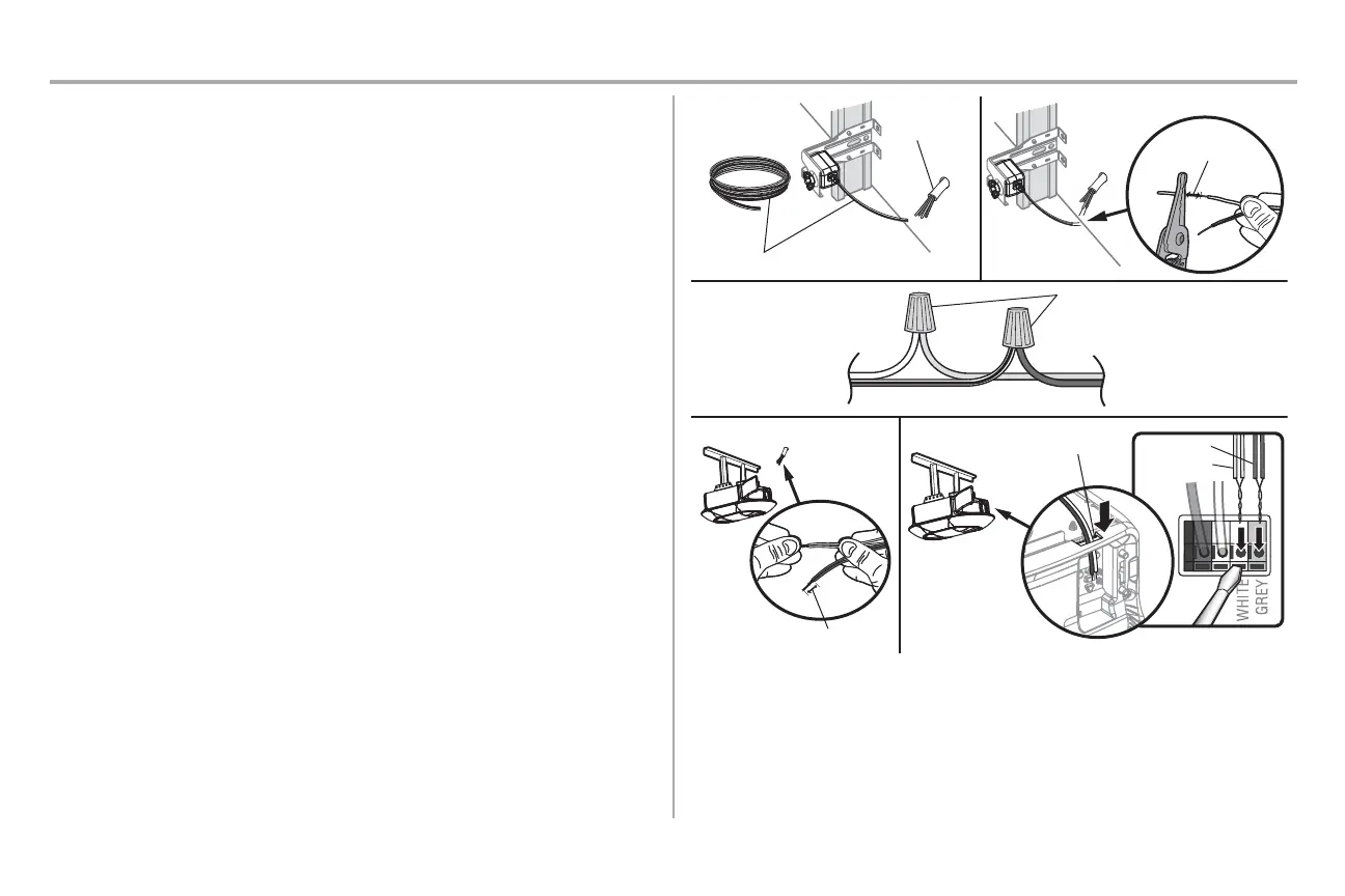 4. At the garage door opener, strip the end of the wires previously connected to the sensors. Twist