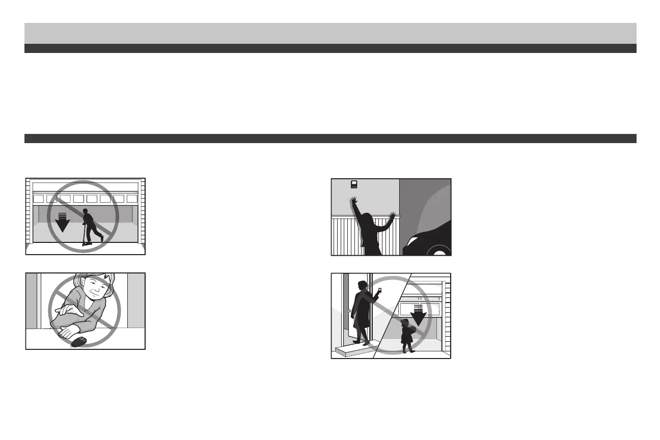 Discuss garage door and opener safety with your children. Explain the danger of being trapped under the door.