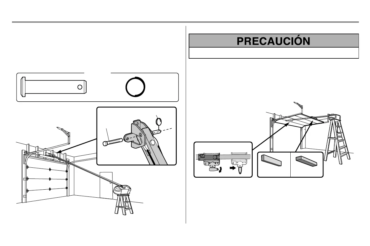 Para evitar que la puerta del garaje sufra daños, apoye el riel del abre-puertas de garaje sobre un pedazo de madera