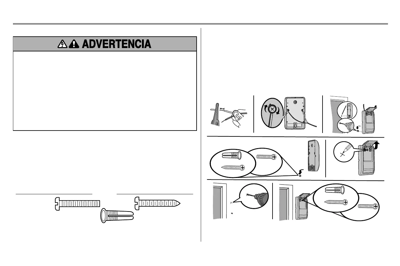 de la puerta. Si se usa una caja para instalar el control, no es necesario hacer orificios ni colocar tarugos en la pared.