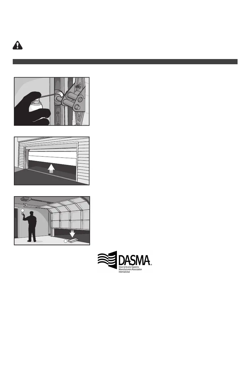 Make monthly inspection and testing of your garage door and opener system a part of your regular routine. Review your owner’s manual for both