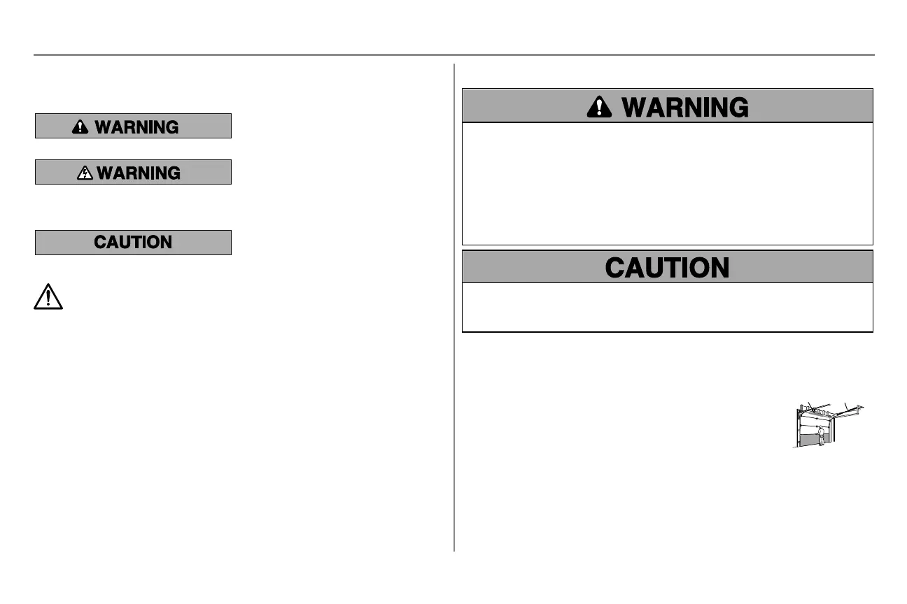 l NEVER try to loosen, move or adjust garage door, door springs, cables, pulleys, brackets or their hardware,