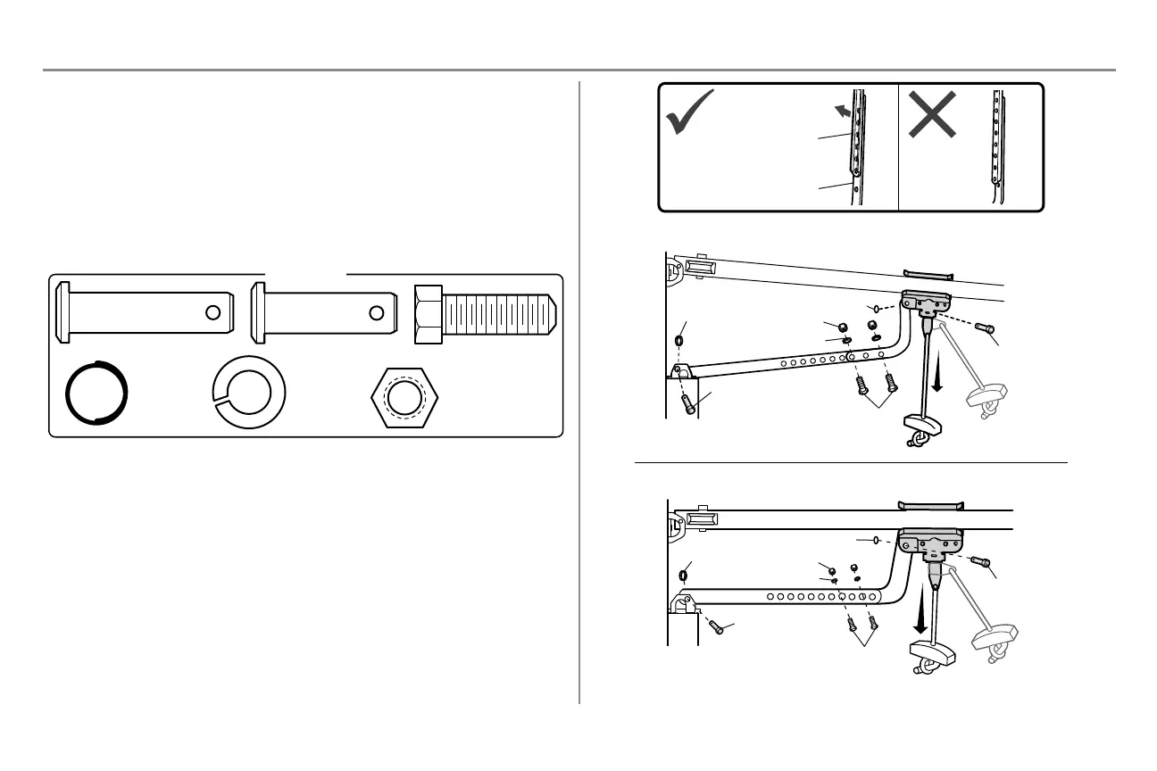 4. Attach the curved door arm to the trolley using the clevis pin. Secure with the ring fastener.