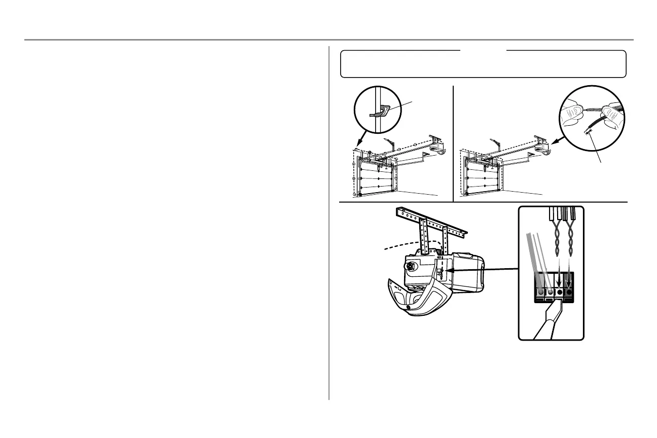 the grey terminal on the garage door opener. To insert or remove the wires from the terminal, push in the