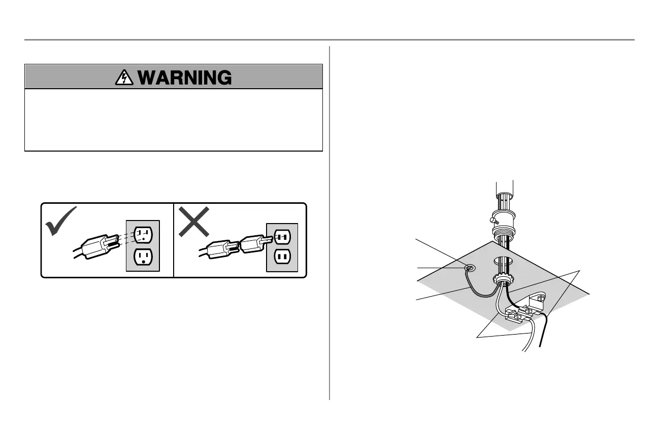 l NEVER use an extension cord, 2-wire adapter, or change plug in ANY way to make it fit outlet. Be sure the