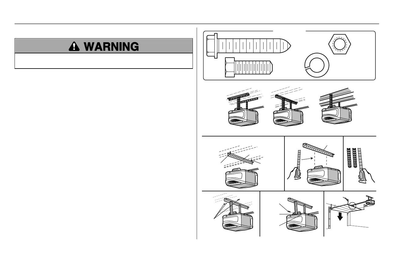 To avoid possible SERIOUS INJURY from a falling garage door opener, fasten it SECURELY to structural