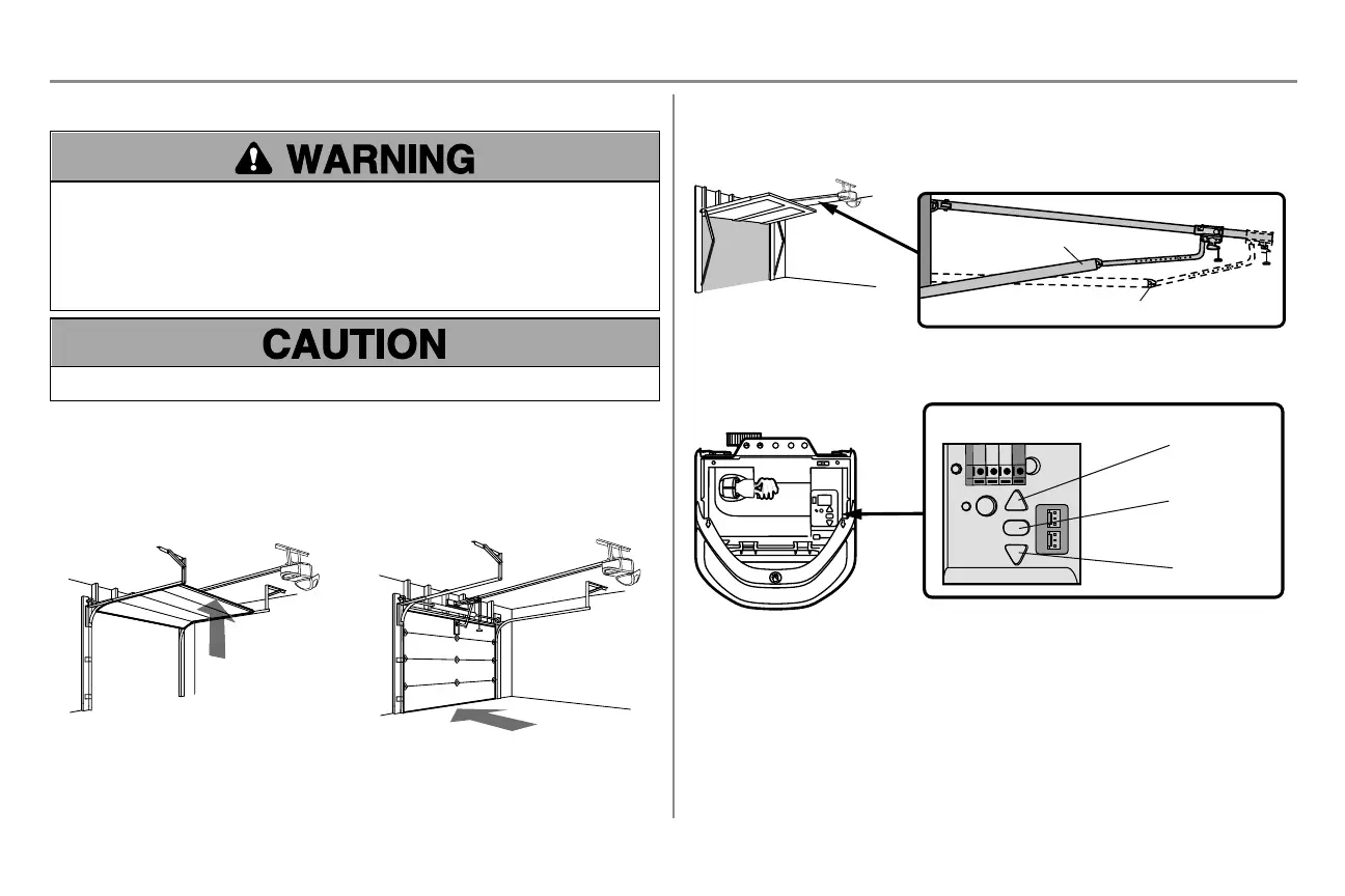 l Incorrect adjustment of garage door travel limits will interfere with proper operation of safety reversal