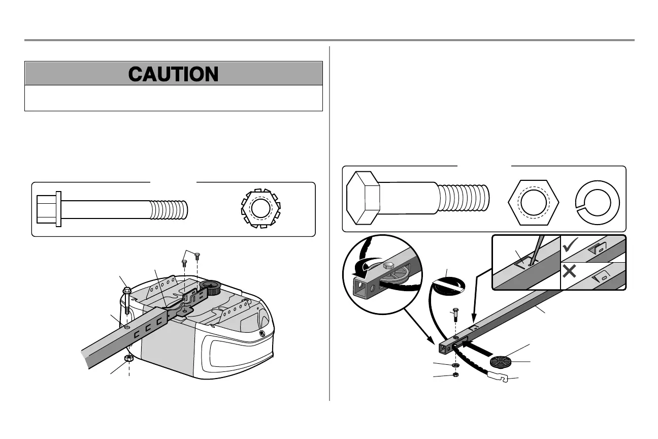 To avoid SERIOUS damage to garage door opener, use ONLY those bolts/fasteners mounted in the top of the