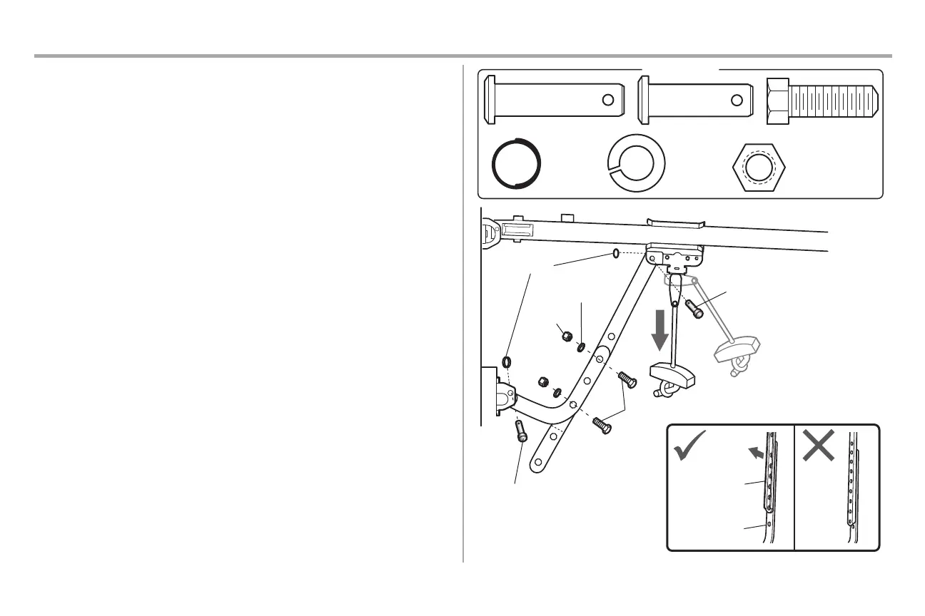 2. Attach the straight door arm to the outer trolley using the clevis pin. Secure with the ring fastener.