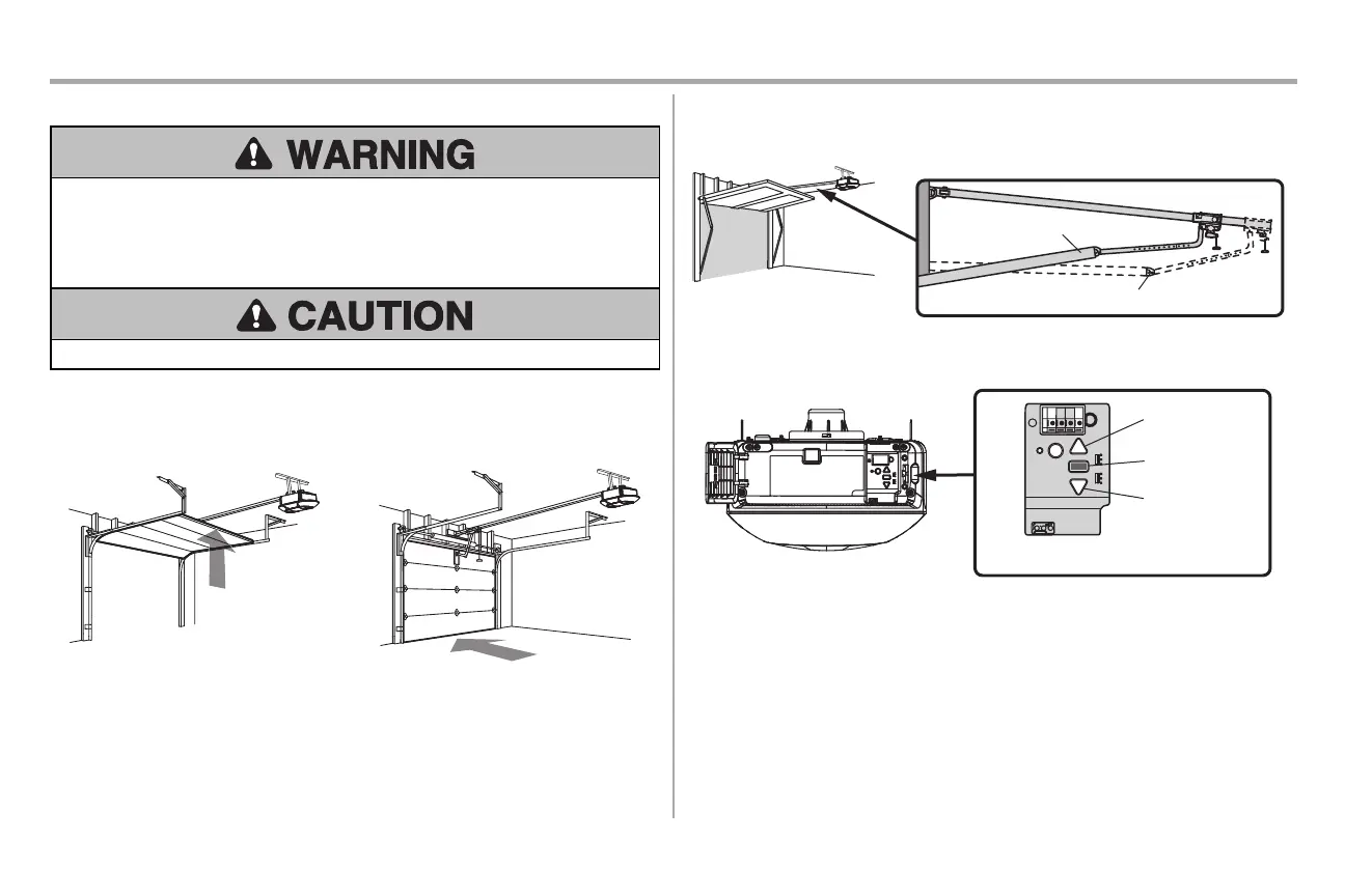 l After ANY adjustments are made, the safety reversal system MUST be tested. Door MUST reverse on
