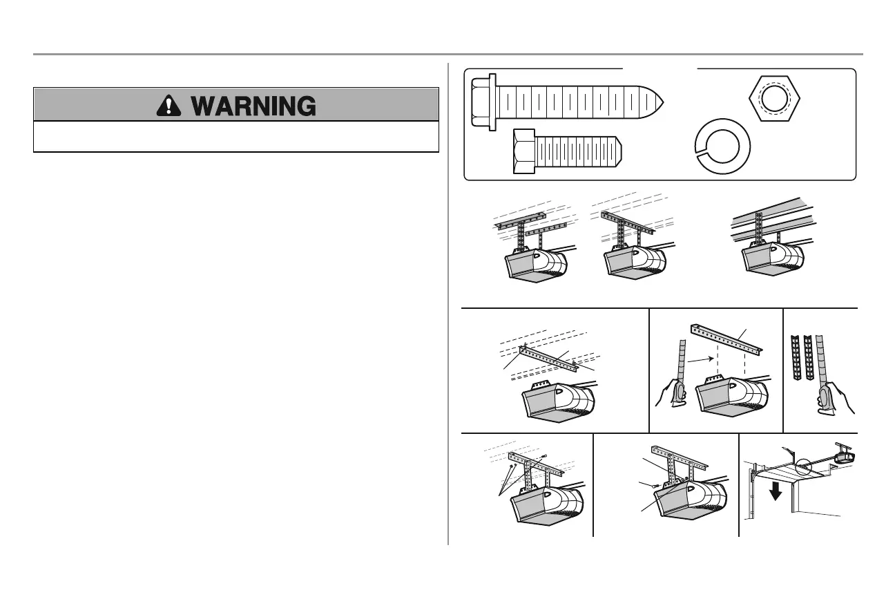 To avoid possible SERIOUS INJURY from a falling garage door opener, fasten it SECURELY to structural