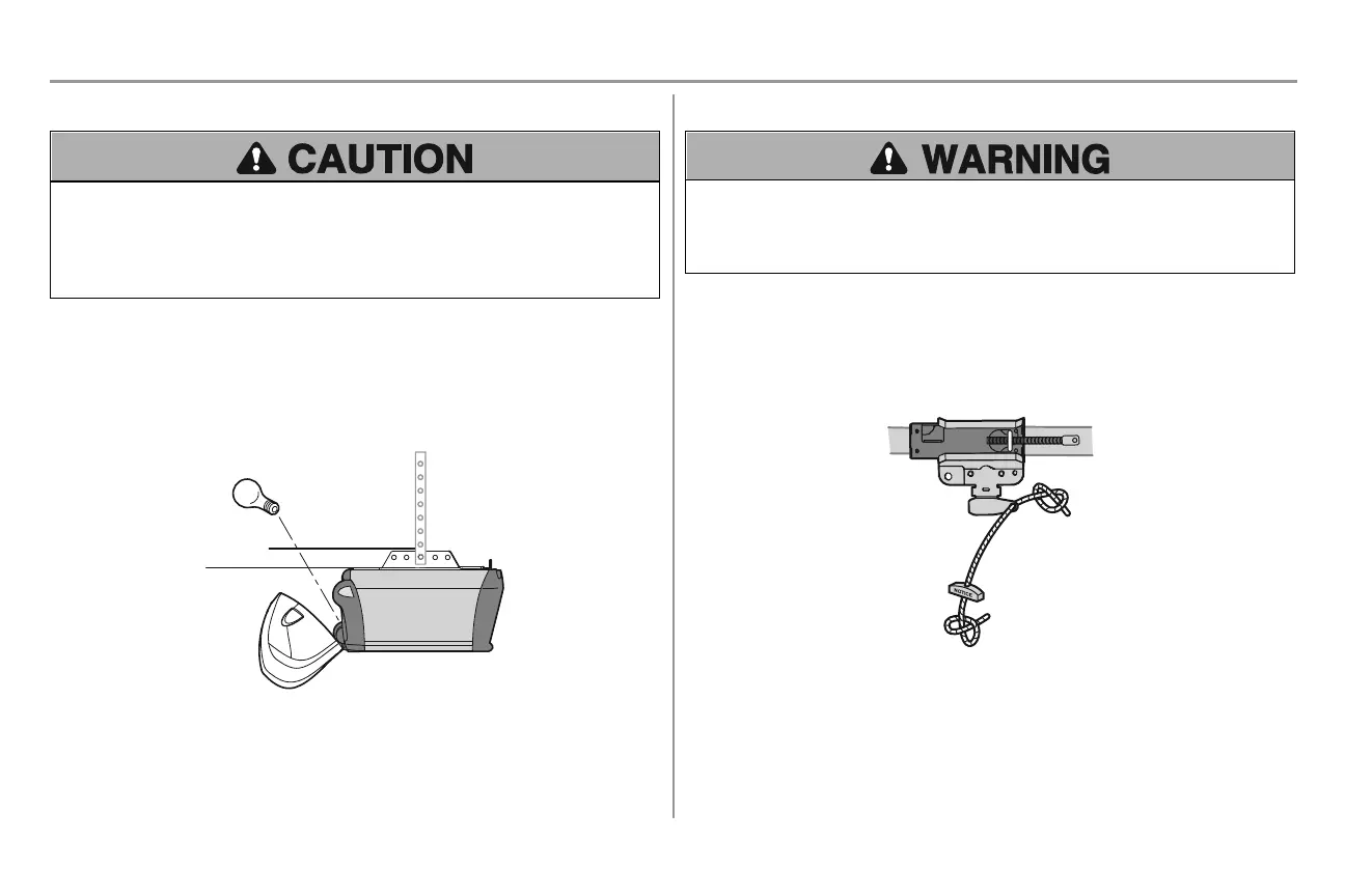 l NEVER use emergency release handle unless garage doorway is clear of persons and obstructions.