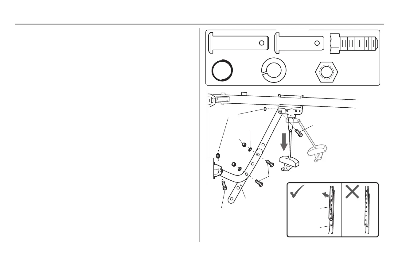 2. Attach the straight door arm to the outer trolley using the clevis pin. Secure with the ring fastener.