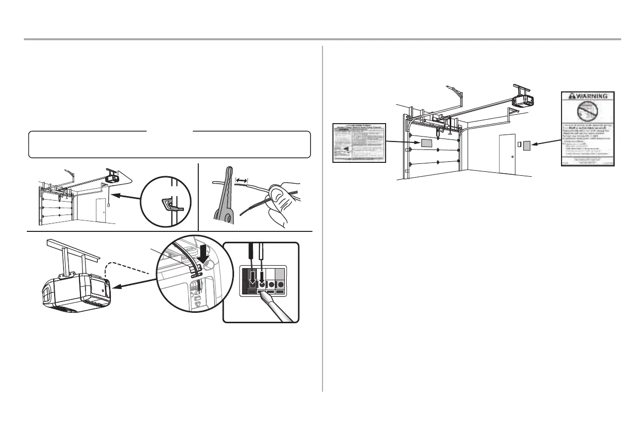 2. Strip 7/16" (11 mm) of insulation from the end of the wire near the garage door opener.