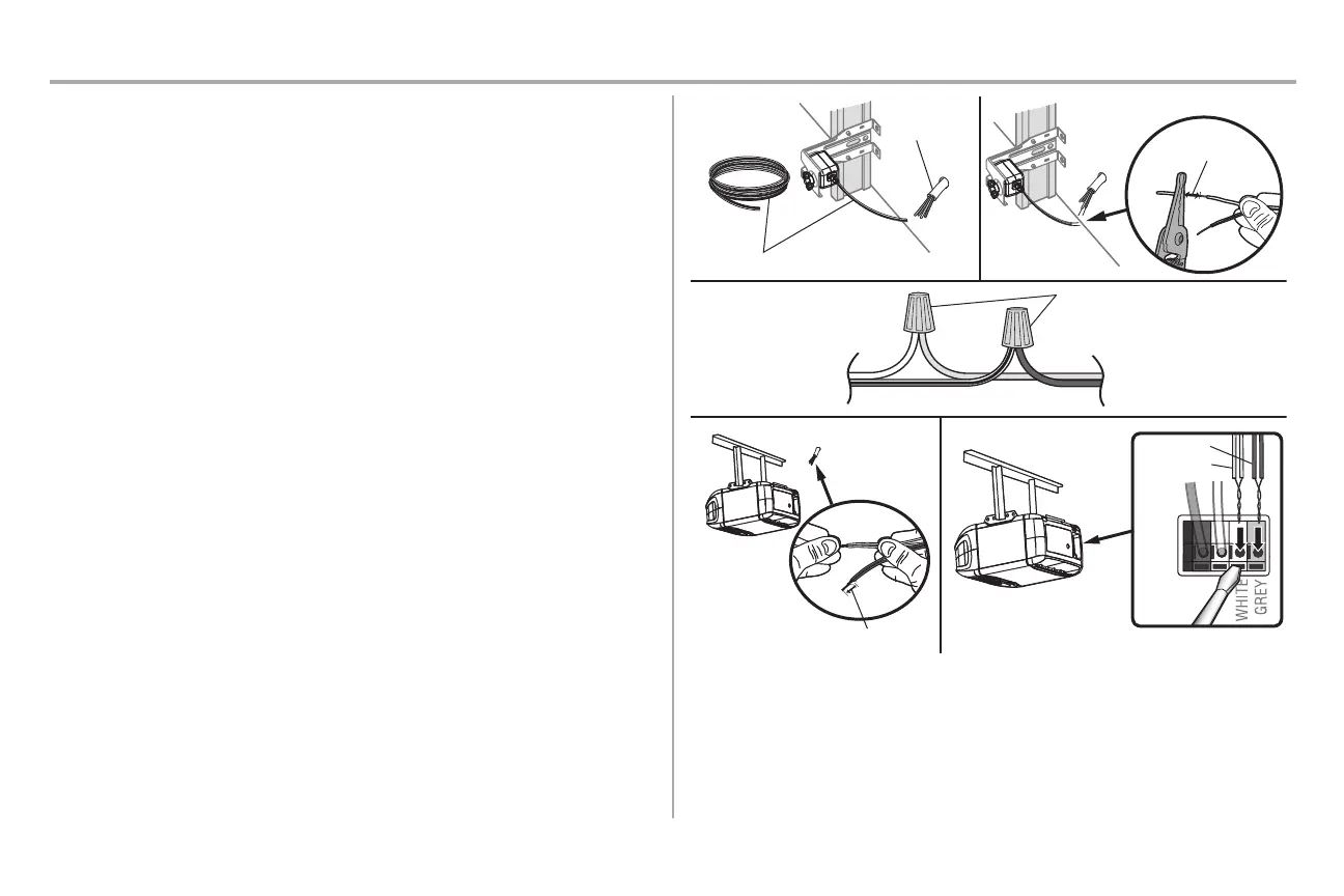 4. At the garage door opener, strip the end of the wires previously connected to the sensors. Twist the