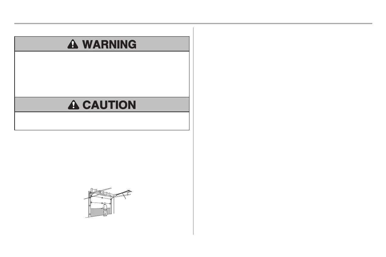 l NEVER try to loosen, move or adjust garage door, door springs, cables, pulleys, brackets or their